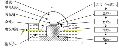 C. 評估粘結(jié)膠及其效果:一般使用到的晶片粘結(jié)膠是銀膠或錫膏,熱沉與散熱鋁基電路板間的結(jié)合膠是導(dǎo)熱硅膠或其它散熱膠,膠體的導(dǎo)熱系數(shù)、膠的厚度、結(jié)合面的質(zhì)量制約熱阻的大小。粘結(jié)膠是否合適,必需通過實驗,測得熱阻作為評估結(jié)論的判斷依據(jù)之一。