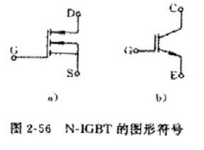 N溝道IGBT的圖形符號(hào)有兩種,如圖4所示。實(shí)際應(yīng)用時(shí),常使用圖2-5所示的符號(hào)。對(duì)于P溝道,圖形符號(hào)中的箭頭方向恰好相反,如圖4所示。