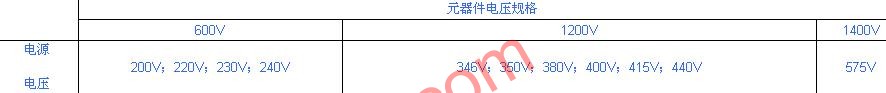 IGBT模塊的電壓規(guī)格與所使用裝置的輸入電源即市電電源電壓緊密相關(guān)。其相互關(guān)系列于表1。根據(jù)使用目的,并參考本表,請(qǐng)選擇相應(yīng)的元件。
