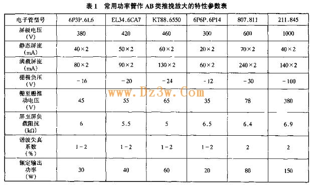 表8-1為常用功率管作AB類推挽放大的特性參數(shù)表。