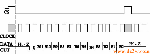 LTC1286的接口時序如圖2所示。由時序圖可知,LTC1286每次轉(zhuǎn)換和傳送數(shù)據(jù)使用15個時鐘周期,在每次傳送周期之間插入CS的時序,從CS信號由高電平變?yōu)榈碗娖綍r,轉(zhuǎn)換和傳送過程開始,到CS為高電平時,轉(zhuǎn)換和傳送周期結(jié)束,CLOCK被禁止,DATA OUT變?yōu)楦咦钁B(tài)。